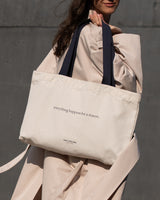 Our mirrored print tote bag lets you capture a photo with the text facing the right way, every time.